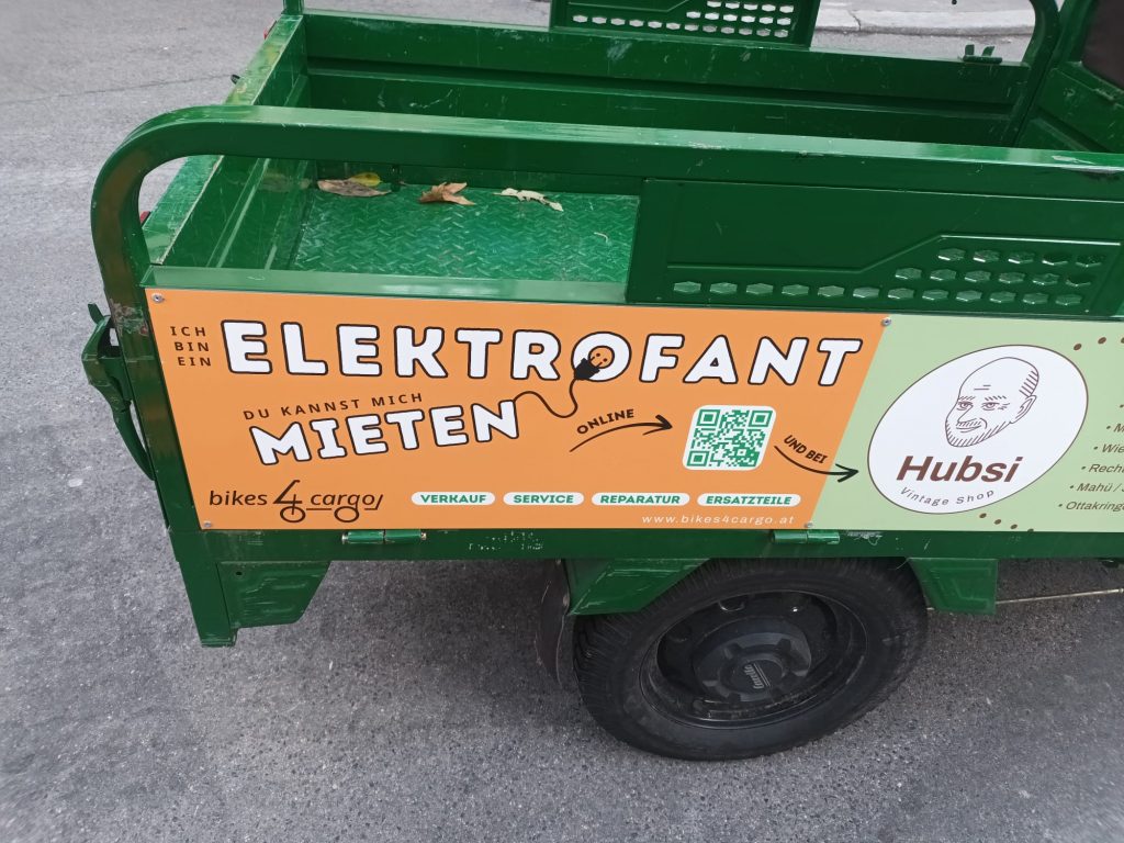Entdecke bei HUBSI nicht nur schöne Vintage-Schätze, sondern ab sofort auch klimaschonende Mobilität: Du kannst exklusiv in unseren Shops das elektrische Schwerlastenrad Elektrofant von Bikes 4 Cargo für Transporte, Umzüge oder größere Einkäufe mieten. Mehr Infos & Buchung findest du direkt bei Bikes 4 Cargo – schau vorbei auf bikes4cargo.at für Details zur Vermietung.